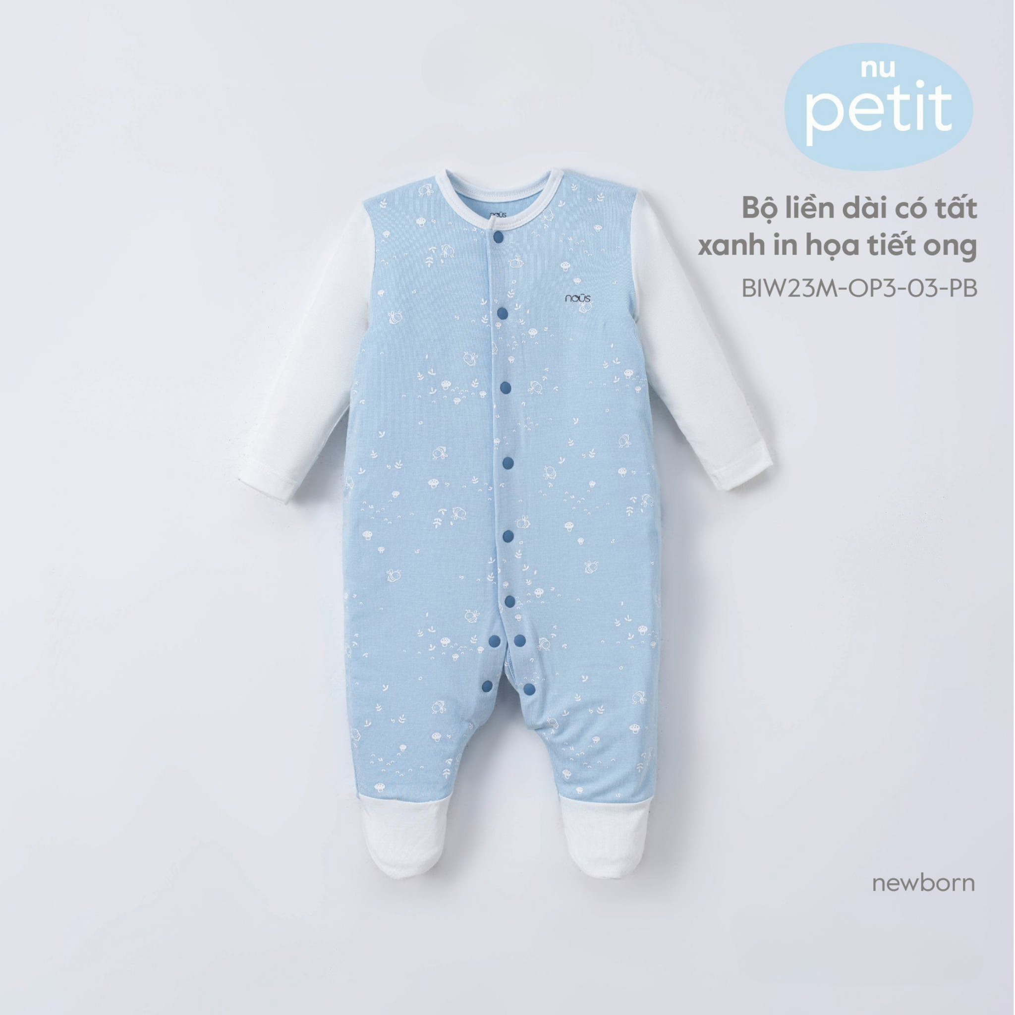 Bộ liền dài có tất xanh in họa tiết ong NB